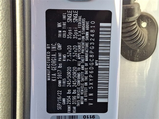 - VIN : 5XYP6DGC8PG324810