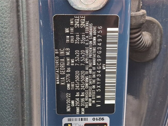 - VIN : 5XYP34GC9PG349756