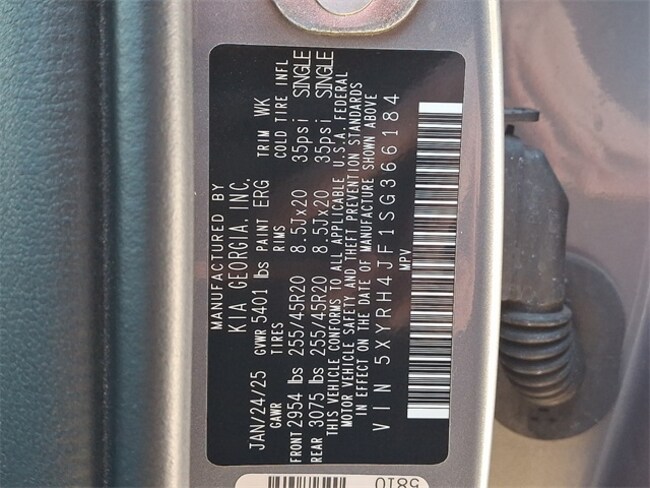 - VIN : 5XYRH4JF1SG366184