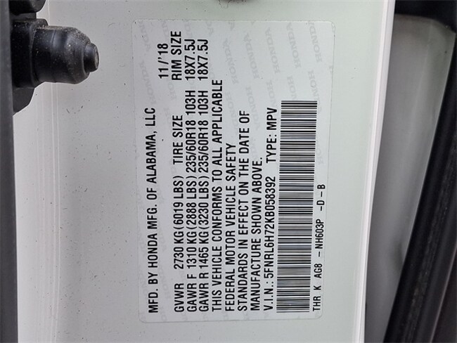 - VIN : 5FNRL6H72KB058392