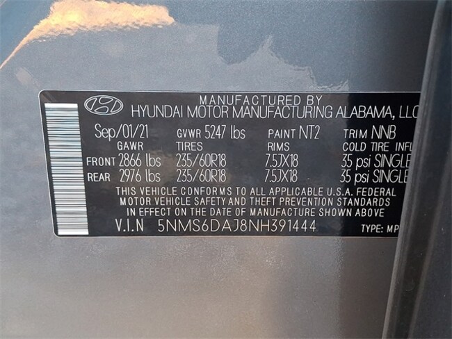 - VIN : 5NMS6DAJ8NH391444
